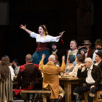 Как и многие вердиевские оперы, «Сила судьбы» – театр голосов: без больших и красивых вокальных «инструментов» сделать эту партитуру адекватной замыслу невозможно. Мариинка выставила сильный каст. Пожалуй, лишь Дарье Рябоконь (Прециозилла) несколько не хватало мощи и масштабности звучания – все было спето аккуратно и с характером, но чуть экономно по звуку. Прочие певцы предъявляли вердиевскую кантилену и вердиевскую экспрессию весьма ярко и убедительно. Даже исполнители второстепенных партий радовали – например, мягкое «органное» звучание баса Олега Сычева (Отец-настоятель) или утрированно гротескное, очень заводное по комедийным краскам пение Александра Никитина (фра Мелитоне).