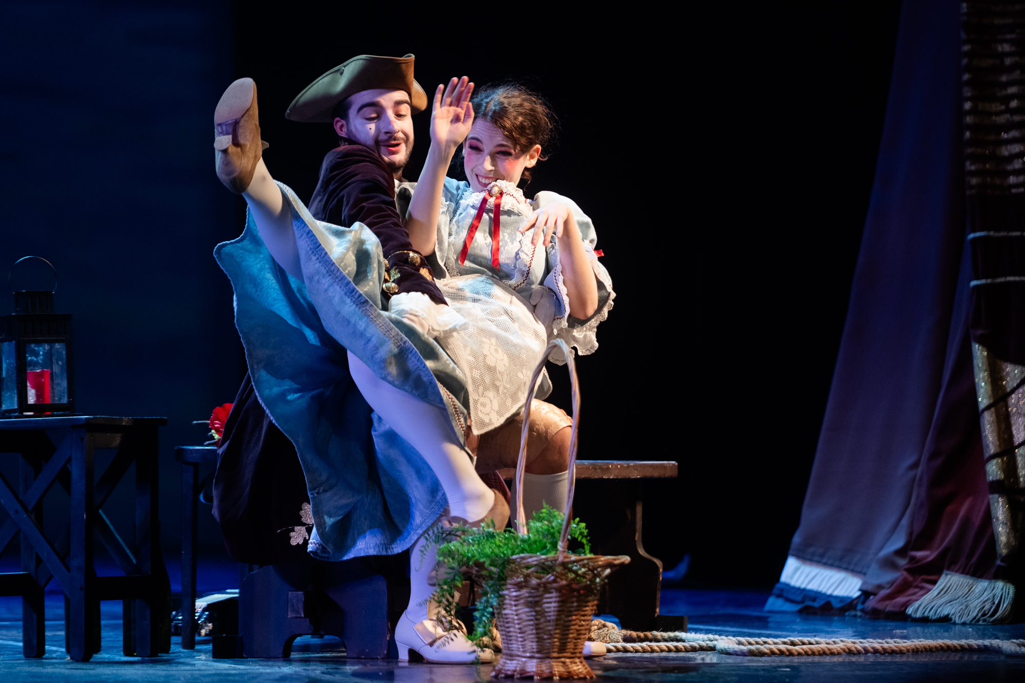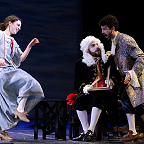Режиссер Стефания Бонфаделли (сама в прошлом известная певица: Москва ее помнит по «Травиате» Франко Дзеффирелли 2003 года, показанной Театром Верди из Буссето в Большом) не придумывала никаких «концепций», а добросовестно разыграла с артистами комедию дель арте. Три пары персонажей шутят и лукавят, интригуют и забавляются, периодически меняясь друг с другом ролями. Назидательный папаша Дон Тритемио (Пьерпаоло Мартелла) со своими «непоколебимыми» принципами; парочка молодых влюбленных сластолюбцев (Евгения – Флориана Чичо и Ринальдо – Марсело Солис), вожделеющих друг друга, но лишенных возможности воссоединиться; хитроумная наперсница главной лирической героини Лесбина (Кристина Каролис), устраивающая личное счастье у нее за спиной; чудаковатый деревенский мыслитель Нардо (Франческо Босси), своими псевдоглубокомысленными сентенциями веселящий всех вокруг; его не менее ловкая, чем Лесбина, племянница Лена (Мария Елена Пепи), охмуряющая в итоге папашу Тритемио, – который, как оказалось, «самых честных правил» только на первый, поверхностный взгляд: вот список героев. Итог взаимодействия этого секстета – бесконечная кутерьма, движуха: именно легкость ее воплощения, тотальная игривость – главное достоинство спектакля синьоры Стефании.