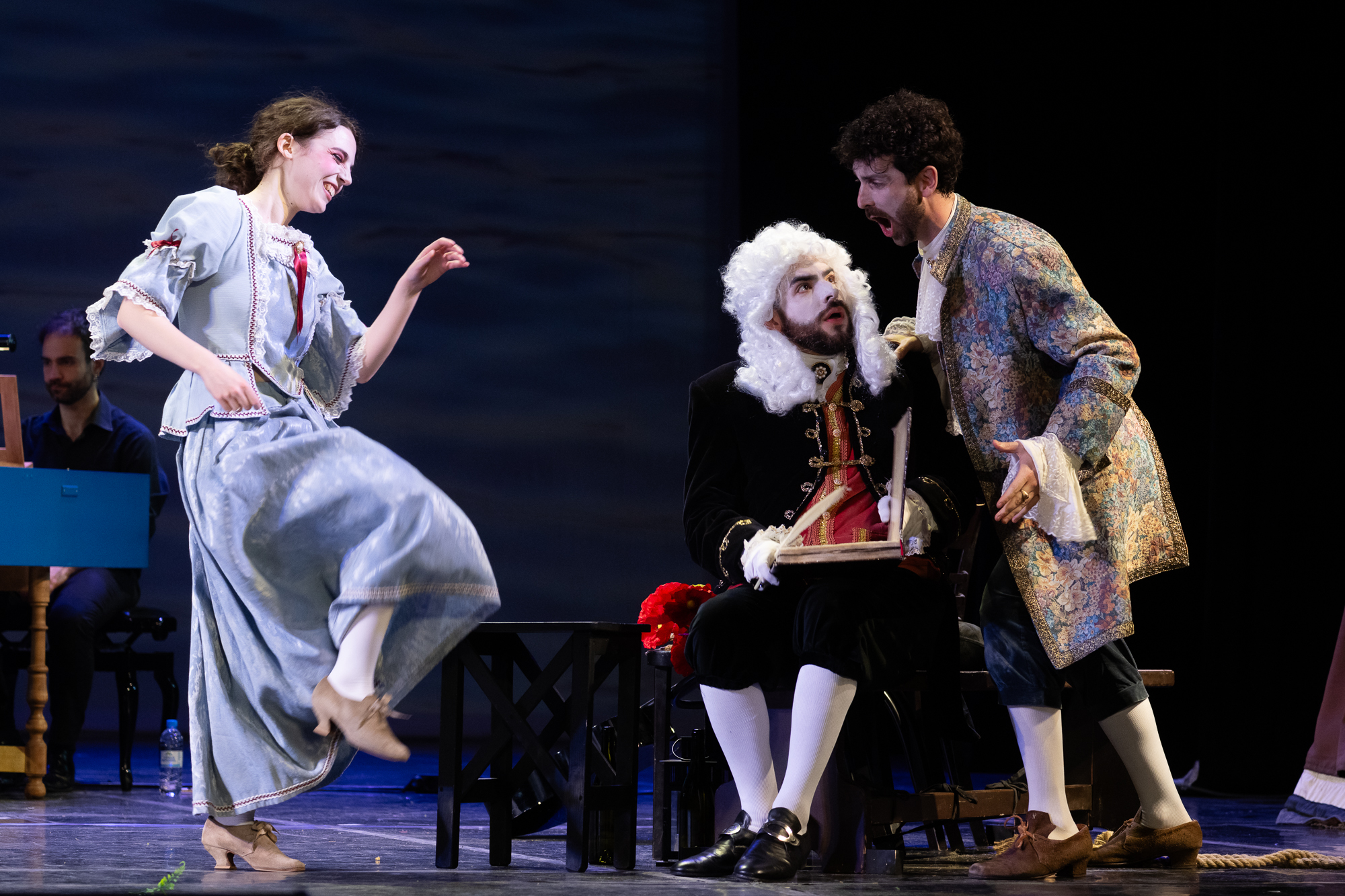 Исполнение оказалось очаровательным, полным шарма аутентизма: оперу разыгрывали музыканты и певцы, идеально владеющие итальянской барочной стилистикой. Аккомпанемент камерного оркестра был деликатен, но одновременно не лишен витальности, яркости – даже драйва и задорного куража. Солисты не демонстрировали некие невероятные голоса, но в «Деревенском философе» этого, наверное, и не нужно: сами же «инструменты» певцов весьма натренированны, гибки, в меру выразительны. Радовало то, что, в отличие от многих других проектов фестиваля в Сочи, исполнение было живым, без микрофонных «подпорок», и выяснилось, что акустика Зимнего театра вполне пригодна для естественной вокализации. Умелые голоса итальянских аутентистов производили особенное впечатление в сочетании с активной, предельно комедийной, порой утрированно гротескной актерской игрой.