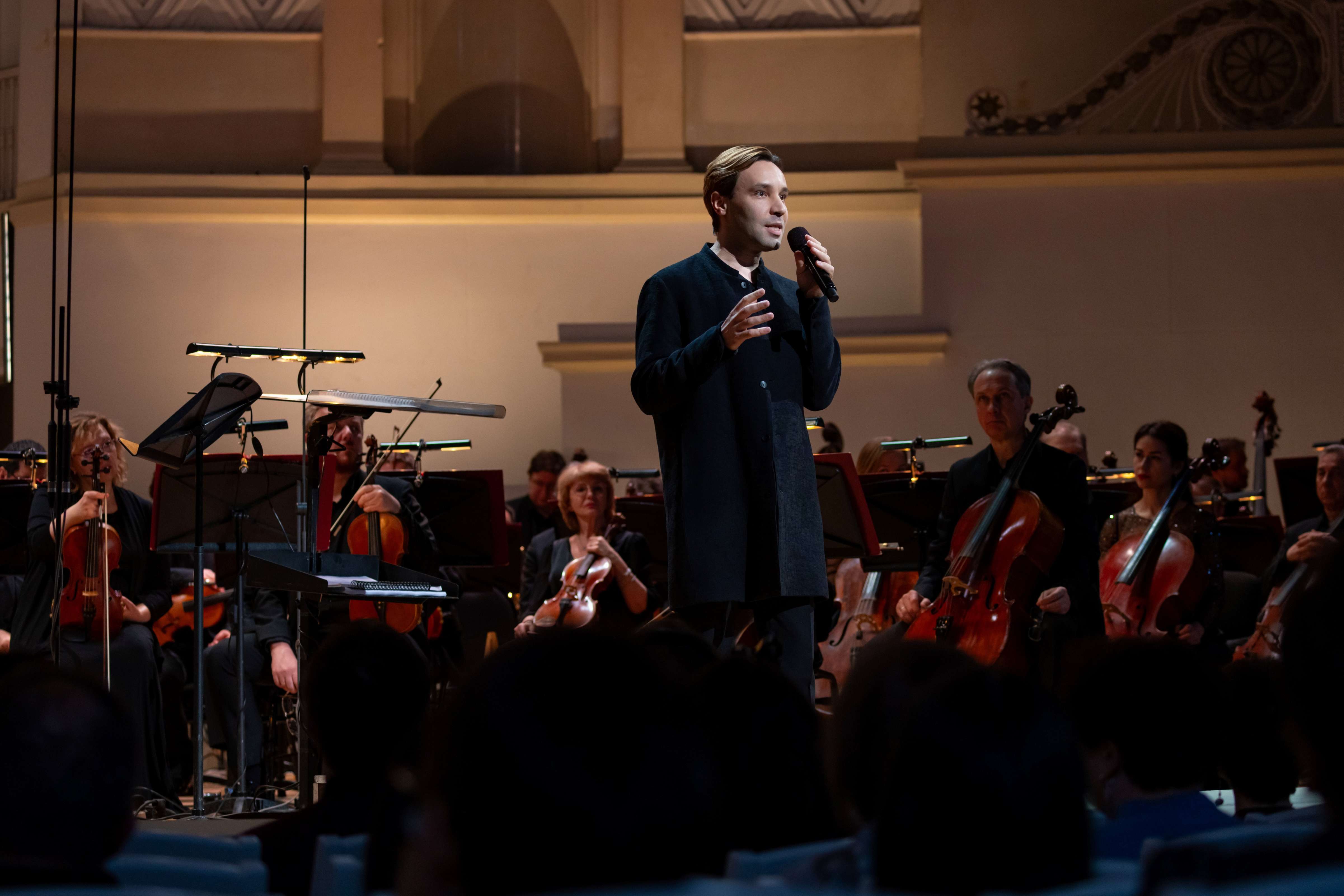 Задача превратить на какое-то время большой концертный зал – в данном случае «Зарядье» – в подобие храма может показаться неразрешимой, но Курентзис уже не в первый раз успешно с ней справляется. Достигался такой эффект за счет особой атмосферы, включающей запрет аплодисментов (входящим в зал раздавали специально отпечатанные листовки), полумрак на сцене, ну и, конечно, характер музыкального звучания. Кстати, это первый раз, когда мне довелось видеть Курентзиса без его главного инструмента – оркестра musicAeterna (задействованы были лишь отдельные музыканты). Он дирижировал одноименным хором. Также впервые довелось услышать плоды композиторского творчества самого Курентзиса, чередовавшиеся с духовными сочинениями Рахманинова, Бриттена, Пуленка, Кнайфеля, а также средневековыми песнопениями. Все это было столь плотно интегрировано между собой, что уловить, где кончается одно и начинается другое подчас не представлялось возможным.