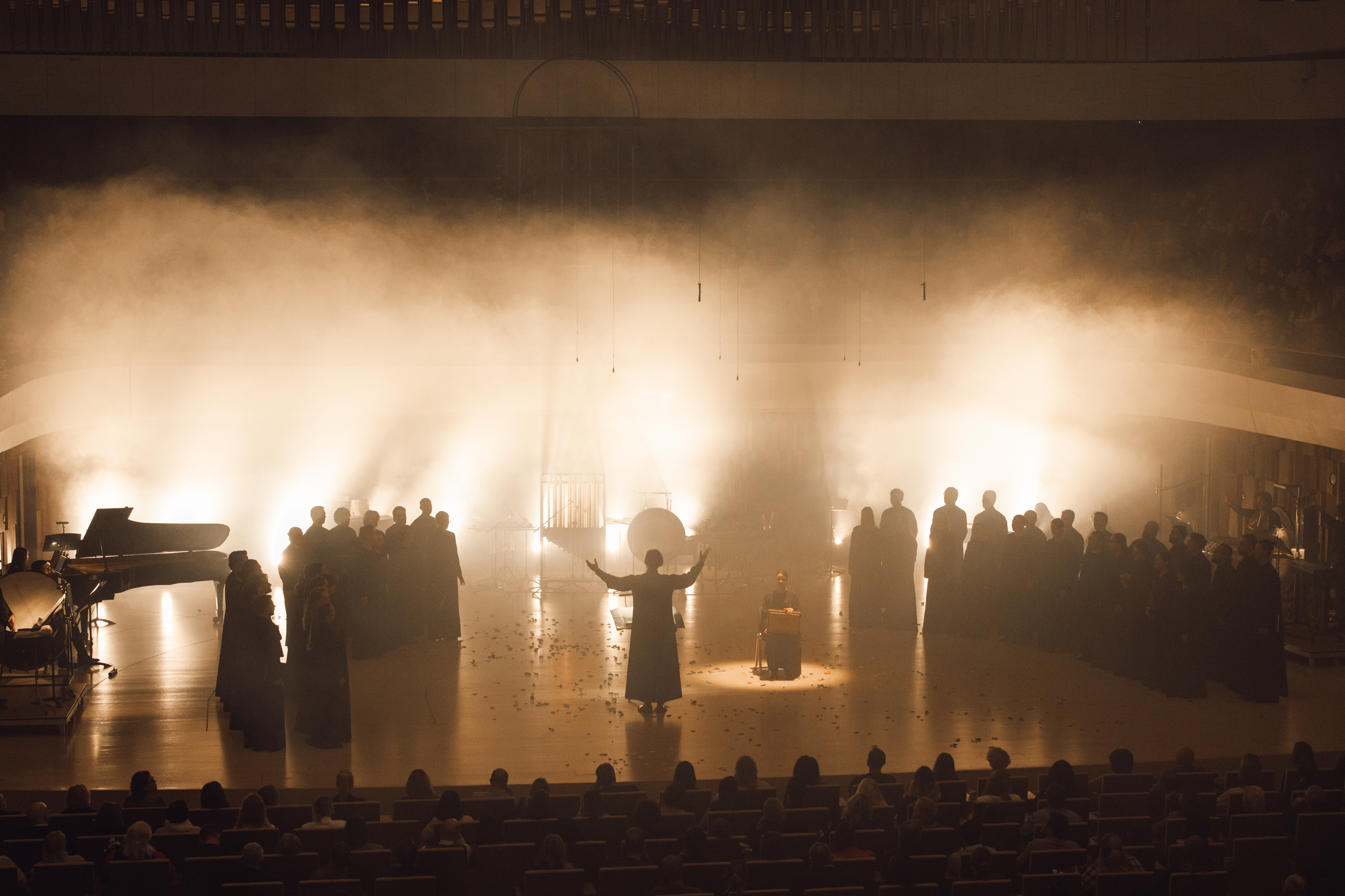 Esperia от Теодора Курентзиса – что это было? Концерт? Не совсем. Спектакль? В какой-то степени. Пожалуй, больше всего тут подходит определение «храмовое действо». У этого действа имелись свои постановщики (режиссер Анна Гусева, хореограф Айсылу Мирхафизхан, художник по свету Наталья Тузова), но правила игры задавал именно Курентзис.