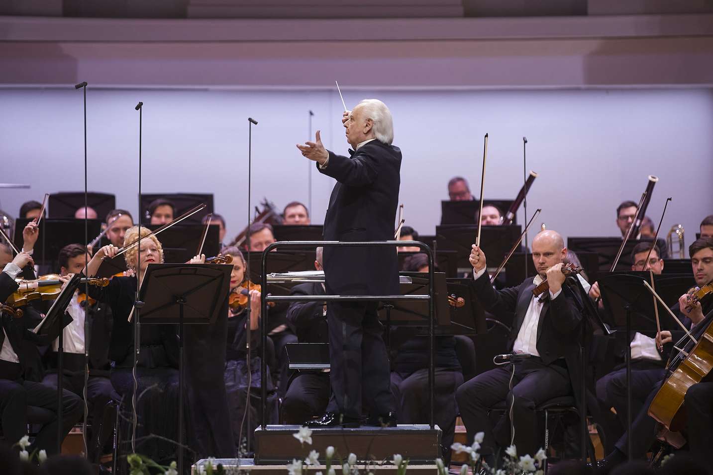 Юрий Симонов сделал тематической программу своего юбилейного концерта (маэстро исполнилось 85 лет): «Вальс в русской и зарубежной классической музыке». Русскую представляли Глинка, Чайковский, Глазунов, Рубинштейн, Прокофьев, Свиридов. Зарубежную – Берлиоз, Гуно, Равель, Лист, Григ и Сибелиус. Все было сыграно качественно, пусть даже некоторым произведениям явственно не хватало более живого пульса и более подвижных темпов. Да и общее впечатление все же уступало предыдущему концерту мастера, на котором я был несколько месяцев назад, когда звучала Девятая симфония Шуберта. Впрочем, тогда ведь и задача была куда как более серьезной. Ну а в собственный день рождения можно не напрягаться – просто получать удовольствие. И бис был только один (обычно у Симонова их несколько), выходящий за тематические рамки программы, – «Испанский танец» из «Раймонды» Глазунова.