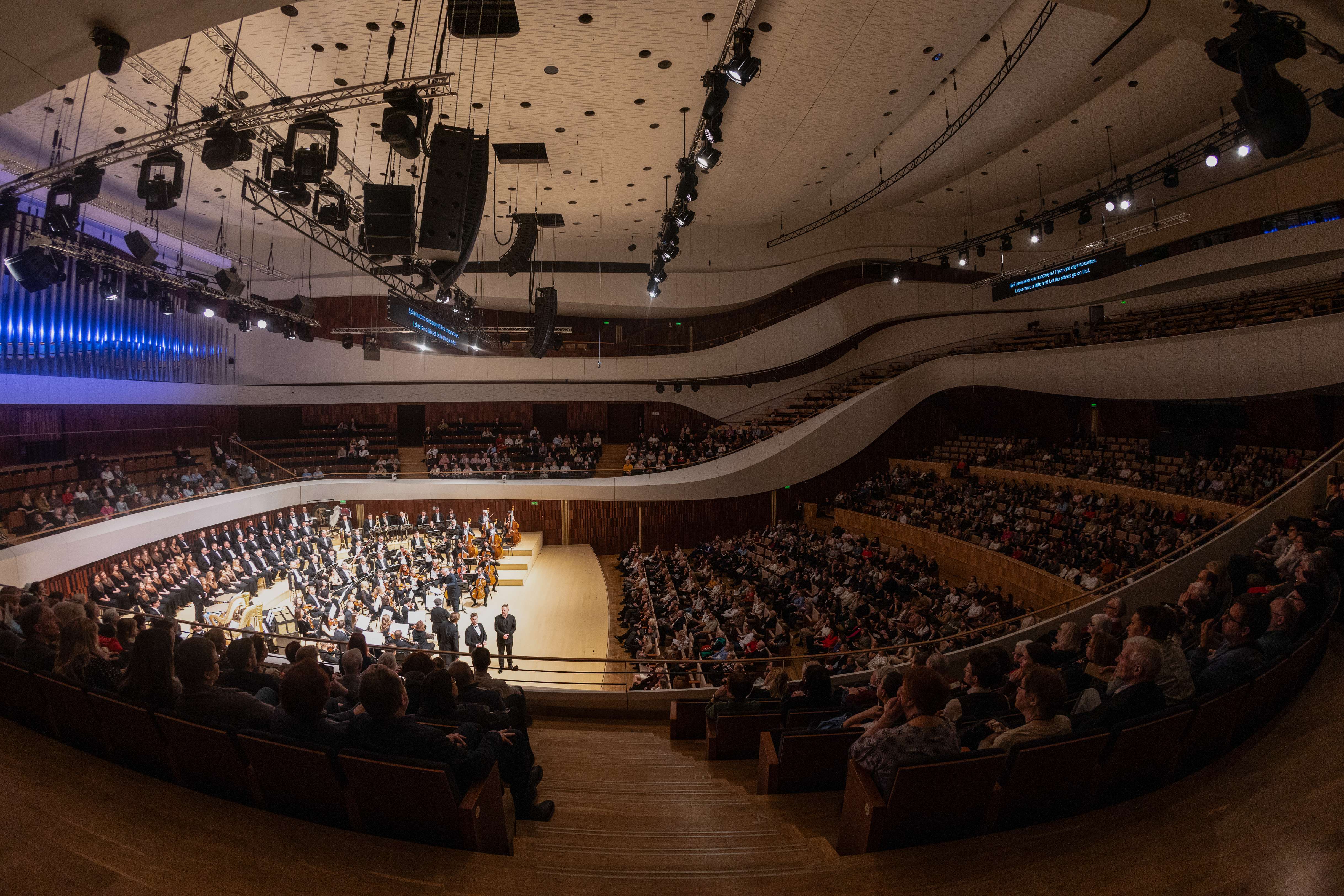 «Золотой петушок» вниманием не обижен, его часто ставят, в том числе за рубежом, в Мариинском же сегодня целых две версии этой оперы: глянцево-гламурная, поставленная в 2014 году Анной Матисон и идущая на Новой сцене, и постановка Анны Шишкиной (2025) для Концертного зала, решенная в стилистике детского утренника. Последняя могла бы идеально вписаться в пространство «Зарядья» (многие параметры залов сопоставимы, и опыт такой у Мариинки уже есть – вспомним привозившихся ранее «Очарованного странника» или «Тристана и Изольду»), однако Гергиев решил посмаковать в Москве исключительно красоты партитуры – опера была дана в концертном исполнении.