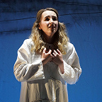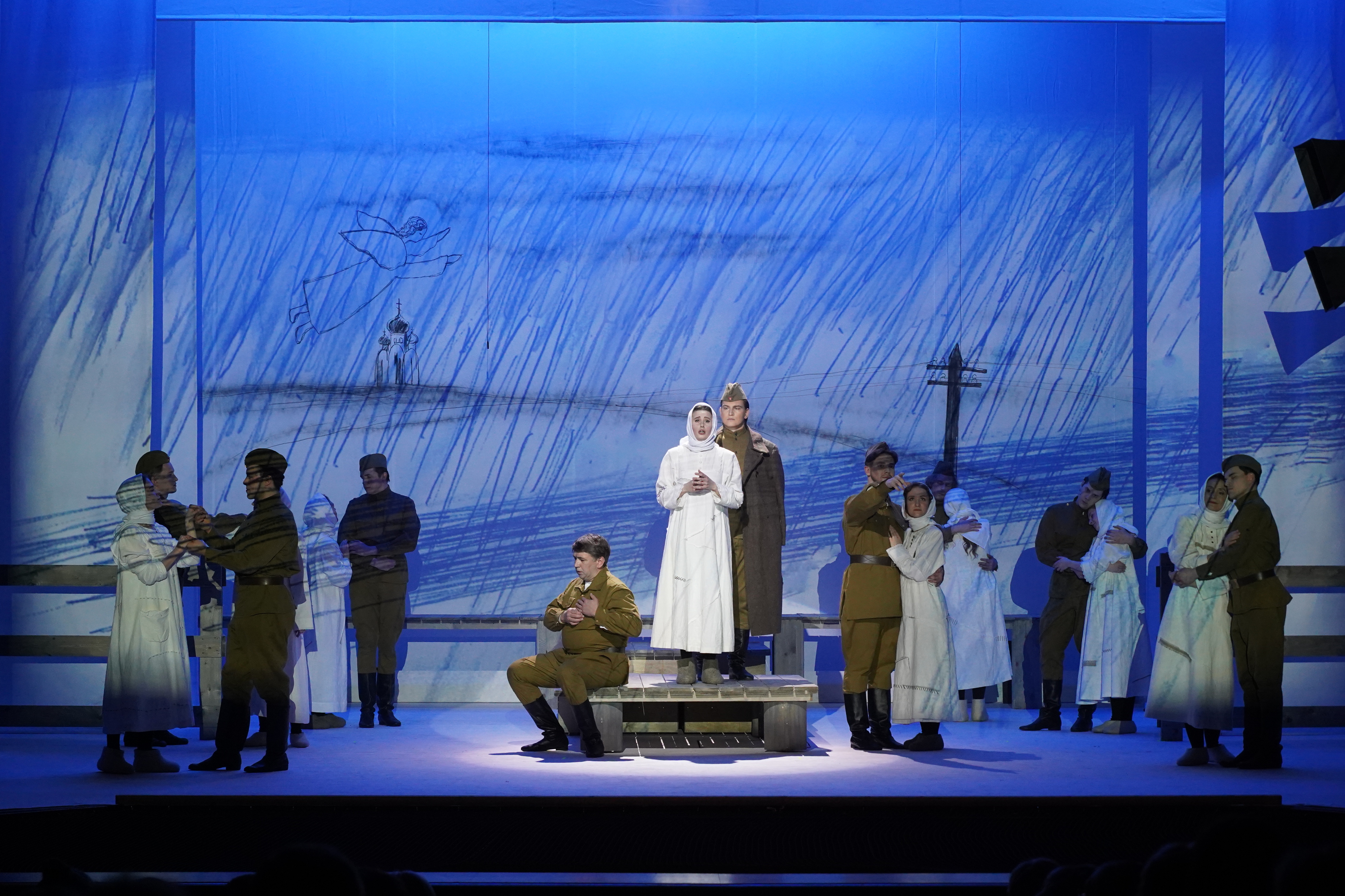 Создатели спектакля затронули хрестоматийную и одновременно сложнейшую в этическом и нравственном, тем более – художественном осмыслении тему войны. Их единственно верным решением было следовать за музыкой, в которой Валерий Гаврилин со свойственной ему верностью последней истине настолько обезоруживающе точно и нервически тонко передал весь мучительный комплекс состояния пишущего о войне, знающего, что она есть на самом деле. С одной стороны, здесь красота, чистота, ясность, легкость и свет, неподдельная искренность народного мелоса, сияние мира, надежд и солнца, с другой – ад разрушений, которые несет с собой война, и больше ничего, никакой радости победы, доставшейся ценой миллионов смертей. Режиссер Мария Павельева действовала в теснейшей связи с динамикой драматургии образов художника Наталии Клёминой, создавшей для «Военных писем» полное воздуха и простора пространство карандашно-акварельных рисунков, словно бы взятых из этой самой военной переписки. Вот речушка, березки, косогор, домики, столбы, цветущие поля, церквушка, тут же – наблюдающие ангелы. Цельность музыкально-театрального шедевра заключалась в том, что в такой же пронзительно акварельной, сейсмографически чутко реагирующей гамме звучал и оркестр под управлением Петра Максимова. Художник по свету Александр Рязанцев написал нежнейшую, дышащую, вдохновенную, живо реагирующую световую партитуру, а балетмейстер-постановщик Ольга Красных – колоссальной силы хореографию, сотканную из простейших, но фантастически прицельных движений языка тела. Что ни номер – то откровение, чему в громадной степени способствовали и стихотворные тексты Альбины Шульгиной, любимого соавтора Гаврилина, нашедшего к ним, кажется, единственно верный интонационно-ритмический ключ.