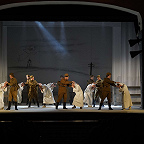 Любая империя сильна контрастами, тем более зазеркальная. «Военные письма» на музыку Валерия Гаврилина стали в ней сенсацией того же масштаба, какой много лет назад оказалась «Золушка» Россини в постановке Александра Петрова. При всей несопоставимой, колоссальной эстетической разнице опусов, «Военные письма» взяли высокую, если не высоченную художественную планку, не оставившую сомнений, что в театре родился новый шедевр. Он оказался настолько велик по силе эмоционального воздействия, что сложно подбирать слова для его описания, как после столкновения с чем-то доселе невиданным. За час с небольшим тебя так вдавливает в кресло, что лишает дара речи, возможности дышать, ибо к горлу подкатывают не комки даже, а целые камни, слезы душат, проливаясь горьким потоком. Сердце сжимается, как губка, с каждой следующей песней, реагируя на музыку, слова, действие, картинку.