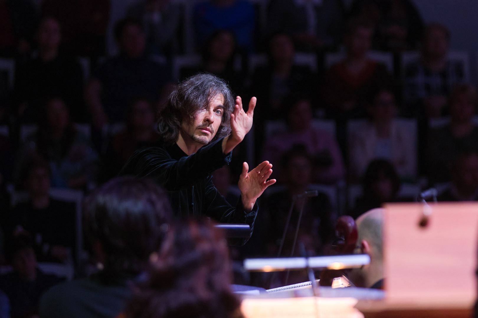 Второе отделение было целиком отдано Микису Теодоракису, породив сразу два вопроса. Первый: а при чем тут, собственно, «Другое пространство»? Ведь музыка этого греческого композитора (в отличие от его чуть более старшего соотечественника Яниса Ксенакиса) вполне себе «конвенциональна». Другой вопрос касается оправданности соединения музыки из оперы «Антигона» с текстами совсем других античных произведений – «Прометея прикованного» Эсхила, «Царя Эдипа» Софокла, «Ипполита» Еврипида и «Лягушек» Аристофана. Максим Хританков и Эльдар Трамов читали (а подчас и играли) их достаточно выразительно, но вопроса это отнюдь не снимало. К тому же текста оказалось в итоге едва ли не больше, нежели собственно музыки, да голоса чтецов подчас еще и мешали ее слушать. Музыка же определенно стоила того, чтобы быть выслушанной, тем более что и РНО под управлением Юровского исполнял ее наилучшим образом. Весьма достойно, впрочем, прозвучали и произведения первого отделения – кстати говоря, ничего похожего за всю свою историю РНО еще не играл, и такое расширение палитры в любом случае полезно для коллектива. А Дмитрий Юровский, хотя и не столь часто обращается к подобного рода материалу, чувствует себя в нем абсолютно свободно.