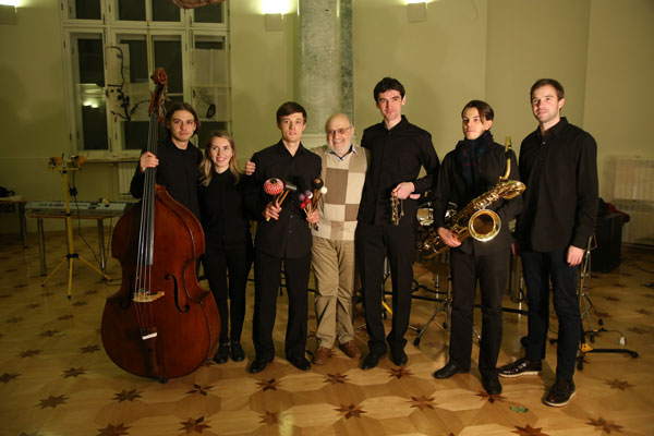 На снимке: А. Кнайфель и участники ансамбля современной музыки «Молот»