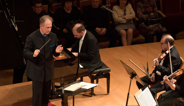 Но прежде – в качестве своеобразного эпиграфа – прозвучало произведение Мессиана под названием «Улыбка». Эта вещь относится к числу поздних опусов композитора, его премьера состоялась на моцартовских торжествах 1991 года. Контраст между медитативно-протяжной кантиленой струнных и острыми всполохами-перестуками у ударных инструментов составляет основу драматургии, четко обозначенной Дмитрием Лиссом. Имея серьезный опыт исполнения современной музыки, оркестр легко справился с техническими трудностями: тягучие аккорды струнных плавно перетекали друг в друга, настраивая зал на созерцательность.