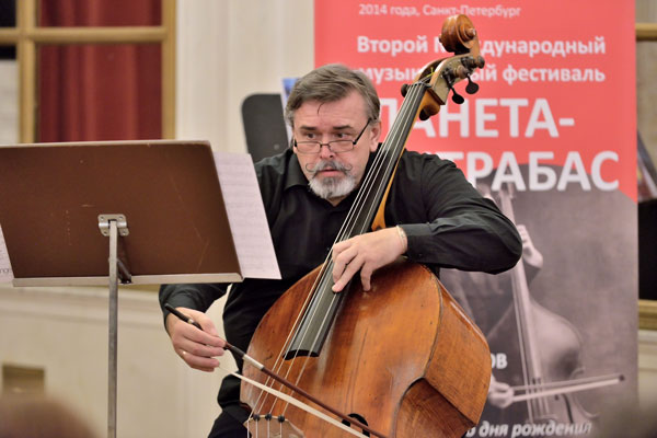 – Наша творческая и человеческая дружба с Александром сложилась давно. Сначала он выступал на фестивале «От авангарда до наших дней» в составе квартета контрабасистов филармонического оркестра. Потом предложил мне что-нибудь написать для этого уникального состава и для контрабаса соло. Так появилось переложение моей фортепианной пьески «Паровоз» для квартета контрабасов, а потом контрабасовый концерт, который вошел десятилетием позже в программу Конкурса им. С.А. Кусевицкого, в учебный и концертный репертуар. Это первое наше успешное начинание привело к созданию работ, по-своему необычных. Родилась идея создать мобильный оркестр на основе четырех-шести контрабасов с использованием нескольких духовых, фортепиано, ударных и других инструментов, где контрабасовый ансамбль стал бы многофункциональным, как струнный оркестр, в отличие от партитур Стравинского и Лурье, где контрабасы выполняют преимущественно басовую функцию. Эту идею я реализовал в таких сочинениях, как Реквием для сопрано, смешанного хора, духовых, ударных, фортепиано и 6 контрабасов и Stabat Mater для сопрано, меццо-сопрано, женского хора, флейты, арфы, ударных, фортепиано, органа и 6 контрабасов. В них контрабасовый тембр играет аллюзивную роль, поскольку отсылает слушателей к барочным оркестрам, часто включавшим в свой состав виольную группу с ее глубоким темным и немного хрипловатым звучанием. Наличие ударных и фортепиано в свою очередь «осовременивает» этот специфический колорит.