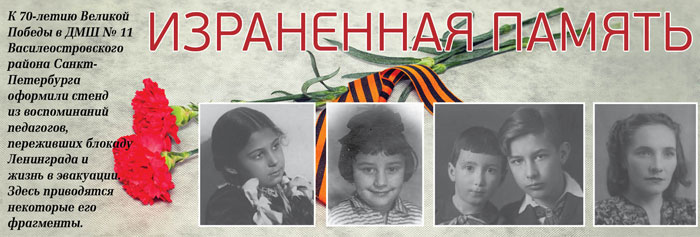 Елена Львовна Островская: «В мае меня и старшего брата мама увезла в деревню, недалеко от станции Малая Вишера. Мне стукнуло пять, когда началась война. Отец – Островский Лев Васильевич, флейтист по профессии, был солистом оркестра Малого Оперного театра. Театр послали рыть окопы, и связь с отцом прервалась. Позже артистов эвакуировали, но папа вернулся к нам, чтобы выехать с семьей. Добирался около недели пешком, под беспрерывными бомбежками. В Чкалове мы оказались в бедственном положении: без документов, подтверждающих, что отец оркестрант, у нас не было ни продовольственных карточек, ни денег, ни одежды. А холода там страшные, да и цены росли как на дрожжах. Первую зарплату папа раздал, и опять пришлось брать в долг. Нас поселили в фойе театра, а позже администрация предоставила комнату, но такую холодную, что у отца открылся летучий ревматизм, а брат слег с плевритом. Когда пили горячую воду, ложки потом примерзали к столу. Спали на школьных столах, застеленных сверху фанерой, укрывались всем, что было под рукой. И вновь администрация помогла, выхлопотав для нашей семьи целый рюкзак дробленого пшена, ставшего нашим спасением, а летом мама завербовалась в колхоз и получала зарплату зерном…