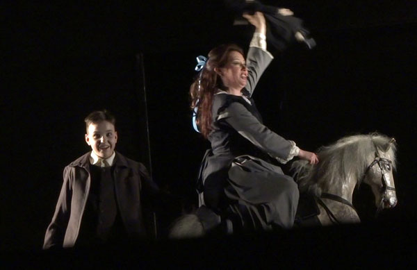 Сейсмически чуткий к музыкальной драматургии МакВикар и его художники выпускают на сцену вместе с призраками леденящие тени, которые вот-вот готовы перебраться и в зрительный зал. В данном спектакле вся эта мистика чуть было не обернулась несчастным случаем – тем самым неосторожным поворотом винта. Кровать, которую артисты миманса дважды прикрепляли, чуть не сорвалась прямиком в оркестровую яму. Положение спасла сопрано Ирина Васильева, исполнявшая партию Гувернантки. Ей и по роли следовало спасать детей, отбившихся от рук, но пришлось делать это и буквально. Опытная артистка с чутким материнским сердцем успела схватиться за спинку кровати с беспечно усевшимся на ней, согласно рисунку роли, 12-летним певцом. Опасность миновала – все остались целы и невредимы.