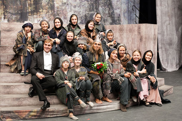 На снимке: После представления «Бориса Годунова» с дирижером Е. Хохловым