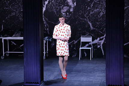 Богомолов демонстрирует полное презрение к существу музыкального театра – музыка Генделя его не волнует ни в малейшей степени, иначе чем можно объяснить тот факт, что роль ей в проекте отведена самая периферийная, а порой она грубо прерывается посторонними акустическими эффектами (например душераздирающими воплями статистов, имитирующих психически нездоровых людей, или песней Евгения Крылатова «Крылатые качели», фрагмент исполнения которой советскими пионерами показан на большом экране)? Естественно, режиссер придумывает свою, параллельную либретто историю, невнятную и нелепую, где присутствует полный набор штампов постмодернизма, – изуродованные трупы, сексуальный маньяк, травести-шоу, гомоэротические томления, длинные тексты на экране, разжевывающие публике смысл происходящих на сцене странных пертурбаций, и пр. Однако все это – поистине сизифов труд, поскольку никакой эпатаж не способен скучное сделать увлекательным.