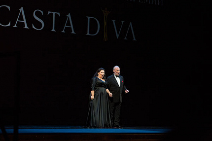 Первым вокальным номером вечера оказалась… старинная видеозапись Марии Каллас, исполняющей каватину Нормы (название которой и дало имя премии) под аккомпанемент криминально не вступающего вовремя хора Французского радио и телевидения. Этот дискредитирующий мероприятие видеофрагмент задал тон всей музыкальной части, где был полный набор «подарков». В их числе – и неумелое сопровождение театрального оркестра с фальшивящими духовыми и плохо ловящим солистов дирижером Андреем Лебедевым; и подозрительные колоратуры Надежды Павловой (E strano из «Травиаты»), из которой усиленно делают звезду, ибо она «певица Курентзиса», а это своего рода пропуск в высший свет российской оперы. И совсем немеццовое звучание Надежды Бабинцевой (Любаша, Сантуцца и Кармен) – впрочем, неудивительное после ее ходок на территорию сопрано; и заметная нехватка звучности для акустически неидеального зала «Стасика» у Василия Ладюка (ария про «несравненную Матильду» из «Иоланты» вызвала ухмылки в зале); и уже недающиеся Сергею Лейферкусу верхние ноты в дуэте Амонасро и Аиды. Пожалуй, безупречной оказалась только Мурадымова, равно убедительно спевшая абсолютно разную музыку – керубиниевскую Медею, моцартовскую Церлину, вагнеровскую Елизавету и вердиевскую Аиду. Ожидаемо хорош был и Алексей Татаринцев, «подпевавший» в дуэтах из «Травиаты» и «Богемы».