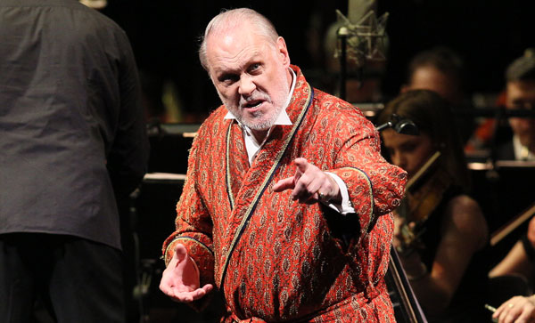Зато прозвучавшие после «Алеко» оперы «Скупой рыцарь» и «Франческа да Римини» были на редкость хороши, так что невольно приходилось удивляться, почему эти зрелые творения композитора редко звучат на сцене. Трагедия Пушкина «Скупой рыцарь» в музыкальной версии Рахманинова, по сути, стала монооперой с небольшим вступлением (диалог Альбера со Слугой и Жидом) и заключением (сцена у Герцога), весь центральный эпизод (размышления Барона) должен держаться исключительно на мастерстве исполнителя, и здесь в плане актерского мастерства Лейферкусу мало равных. Вышедший на сцену в красном халате а-ля Плюшкин певец в течение всего длинного монолога держал зал в непрестанном напряжении, безупречно артикулируя каждое слово и обозначая всю сложную гамму чувств – от страха и презрения до алчного самолюбования и гордости (выразительно подчеркнутая реплика, почти что цитата из «Бориса Годунова»: «Какой волшебный блеск, сильна моя держава… Я царствую»). Принципиальный противник современной радикальной оперной режиссуры Лейферкус превосходно работает в жанре психологического театра, когда при минимуме внешних движений благодаря интонации, опять же безупречной дикции и, главное, тончайшей нюансировке можно представить точный портрет и настроение изображаемого героя.
