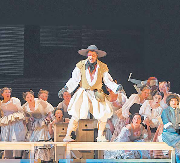 Безусловно, кто-то взгрустнет, что французский вариант, созданный на либретто Эжена Скриба и Шарля Гаспара Делетр-Пуарсона, потерял ярко выраженный буффонный колорит, а являющаяся визитной карточкой «Путешествия в Реймс» большая концертная пьеса для 14-ти голосов трансформирована в «Графе Ори» в септет с хором. Зато благодаря французскому вокальному мелосу новая, более компактная по форме опера приобрела и более воздушную вокальную субстанцию, а изысканно-элегантный шарм и ажурный флер этой музыки проявились во всем блеске великолепной россиниевской оркестровки. Этот дивный музыкальный язык каждый меломан, несомненно, открывает для себя по-своему: мне же впервые довелось вживую встретиться с этим шедевром Россини на премьере фестивальной постановки в Пезаро в 2003 году. Тот спектакль предстал по сути большим и роскошным режиссерским концертом, сделанным очень тонко, на явной игре нюансов и полутонов, и главным в нем был несравненный перуанский соловей-тенор Хуан Диего Флорес в титульной партии, равного которому в россиниевском репертуаре в мире сейчас просто нет. И когда этот спектакль был повторен в 2009 году с другим составом, из него ушло то главное, что когда-то наполняло сердце безотчетной радостью музыкального парения, – постановка сохранила лишь очень добротный и качественный уровень.