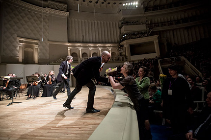Его звук ярок и сконцентрирован, полетен, его нельзя назвать мощным, что было бы опрометчиво ожидать пусть и от техничного, вышколенного и натренированного, но все же фальцета, однако это достаточно насыщенный голос, способный покрыть столь крупное и акустически непростое пространство, как Зал Чайковского. За весь концерт была лишь пара мест, когда оркестр Musica Viva – весьма деликатный и легко справляющийся со стилистикой барокко и раннеромантического бельканто – «затушевывал» певца. В целом же голос Фаджоли никак не назовешь блеклым или слабым, он уверенно находил убедительный баланс с инструменталистами.