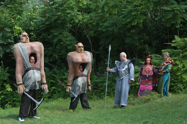 …На зеленой лужайке перед спуском вниз появляется Вотан, за ним – Фрикка и Фрейя. Прохиндей Логе, уже разнюхавший, что Альберих под землей сковал кольцо власти и, поработив им своих вассалов-нибелунгов, поставил добычу золота на «промышленные рельсы», появляется прямо из пещеры, чтобы как раз и намекнуть Вотану, мол, «вот тебе удобный случай, чтоб играть без денег». Завязку венчает выход очаровательных великанов: лишь только Фазольт и Фафнер уводят Фрейю в залог оплаты за Валгаллу, недавно отстроенное «элитное» жилище богов, мы вслед за Вотаном и Логе следуем в пещеру по влажным, скользким ступеням. После 28 градусов на солнце погружаешься в промозглую прохладу: температура в 12 градусов здесь держится круглый год.