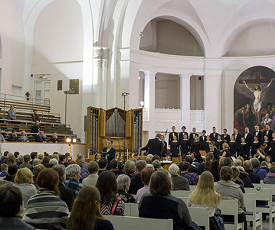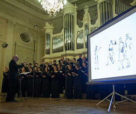 26 января в Светлановском зале Московского международного Дома музыки состоялся концерт немецкого ансамбля «Кантус Кёльн» под управлением Конрада Юнгхенеля