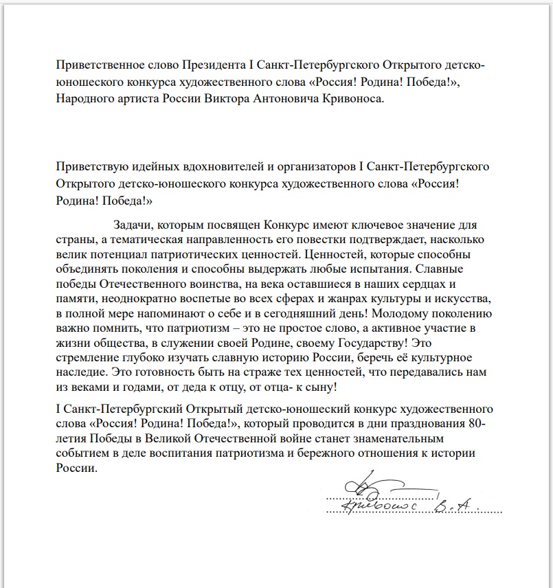 Организатором I Санкт-Петербургского Открытого детско-юношеского конкурса художественного слова «Россия! Родина! Победа!» является Санкт-Петербургское государственное бюджетное учреждение дополнительного образования «Санкт-Петербургская детская школа искусств имени С.В.Рахманинова»