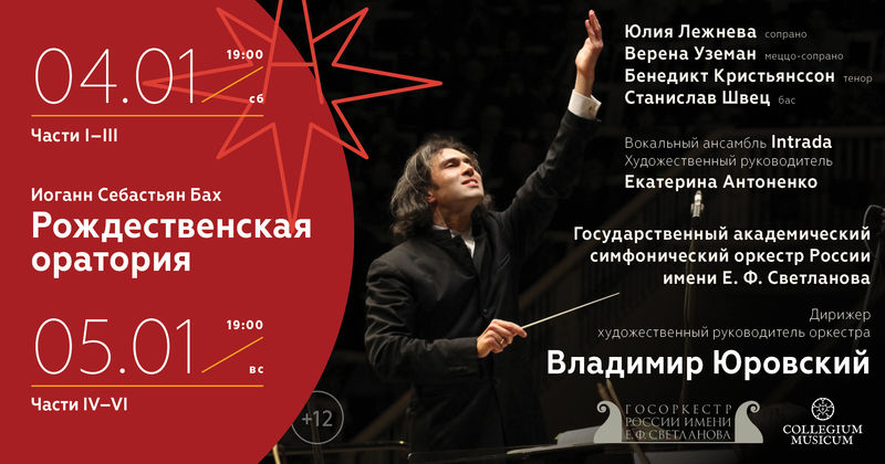 Коллектив, впервые выступающий в московском Кафедральном соборе святых Петра и Павла, в два вечера - 4 и 5 января исполнит 6 кантат, написанных Бахом для рождественских богослужений в главных церквях Лейпцига. Музыковеды по сей день спорят, считать ли «собранные» композитором в ораторию самодостаточные произведения циклом или цельным сочинением. Тем интереснее, как эту дилемму разрешит Юровский (вообще редко обращающийся к Баху, что добавляет концертам эксклюзивности). В исполнении примут участие органист Александр Князев, вокальный ансамбль Intrada и интернациональная команда солистов - Юлия Лежнева, Верена Уземан, Бенедикт Кристьянссон, Станислав Швец.