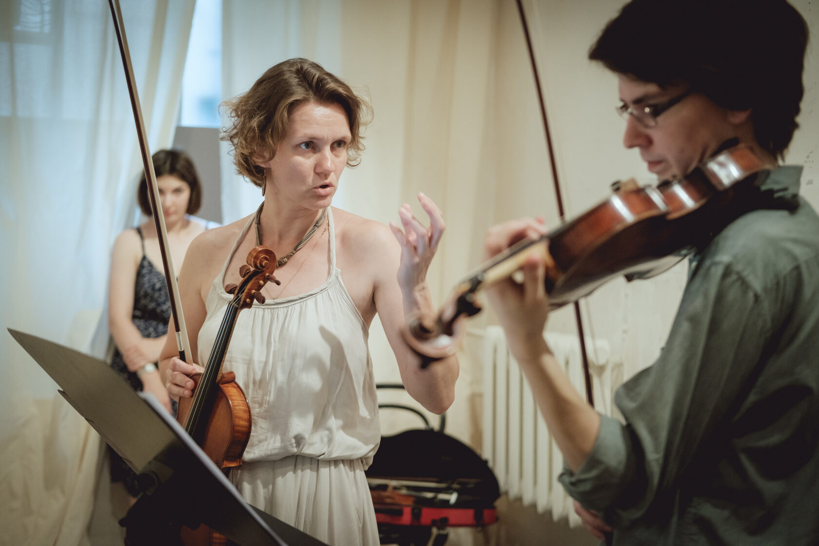 Сегодня – завершающий день Второго исполнительского практикума современной академической музыки, организованного Российским музыкальным союзом и Московским ансамблем современной музыки. С 28 июня в столичной Галерее-мастерской «ГРАУНД Солянка» 40 студентов и молодых специалистов со всей России знакомились под руководством артистов МАСМ с разными исполнительскими техниками и подводными камнями, которые таит в себе современная музыка. 3 и 4 июля в Галерее состоялись концерты участников практикума, сегодня – вечер в Театрально-культурном центре имени Мейерхольда. Прозвучали и прозвучат сольные и ансамблевые произведения современных композиторов, которые студенты подготовили во время обучения, а также импровизации.