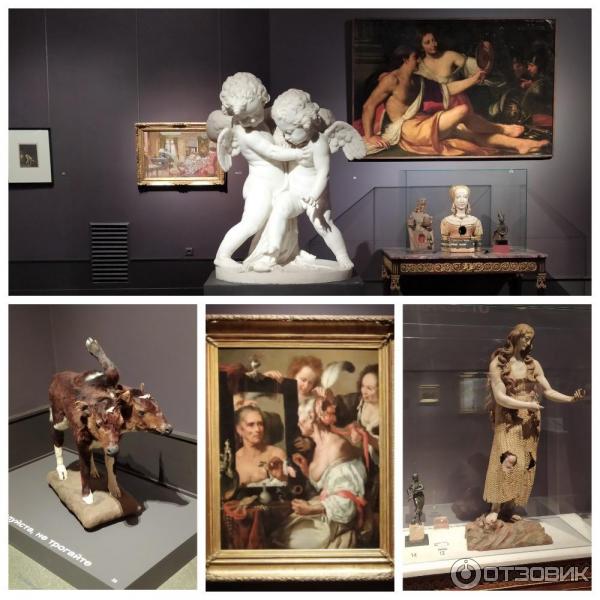 Для каждого из 13 залов экспозиции была создана своя звуковая партитура. К примеру, в зале «Античная скульптура. От белой к полихромной» хористы (которых посетители выставки обнаружили прямо в своих рядах) воспроизвели звуки ветра, будто сдувающего все наносное с работ мастеров прошлого. В зале «От зеркала к двойнику» к звуку человеческого голоса добавился цифровой, воспроизведенный смартфонами. В последнем зале «От вакханалии до таверны» музыканты от затаенного битбокса перешли к почти животным звукам.