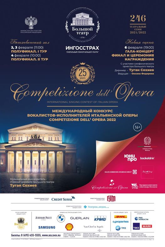 В отборочном туре, который проходил в нескольких городах Европы и Латинской Америки, приняли участие более 600 вокалистов. В Москву на очный полуфинал приехали 90. В финал после выступлений в сопровождении фортепиано прошли 12 участников. На заключительном прослушивании, которое состоялось вчера, каждый из них исполнил с оркестром Большого театра под управлением Тугана Сохиева две арии на итальянском языке. Напомним: Competizione dell`opera - единственный в мире конкурс, участники которого исполняют исключительно итальянский и италоязычный оперный репертуар в диапазоне от старинной музыки до музыки XX века. «Это язык, позволяющий наиболее объективно оценивать певцов», - комментирует идею состязания его бессменный арт-директор Ханс-Йоахим Фрай (к слову, недавно получивший российское гражданство).