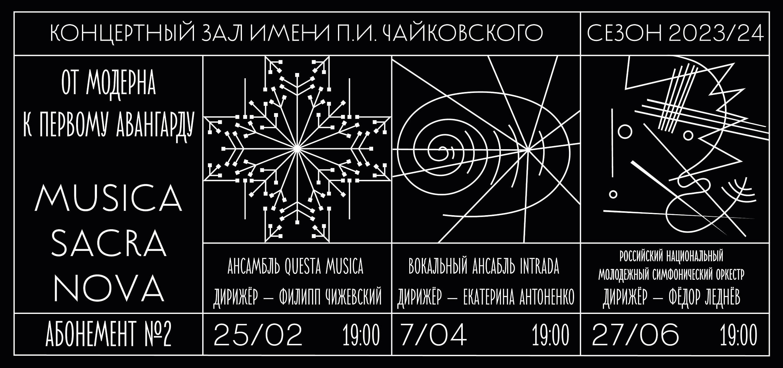 Его первый сезон, инициированный Фондом Николая Каретникова, был посвящен духовной музыке композиторов из бывшего СССР. Тема нынешнего - «От модерна к первому авангарду». В центре внимания окажется тот период русского искусства, где впервые обнаружился выход композиторов в «новую сакральность». С идейными и эстетическими проявлениями этого процесса публику Концертного зала имени Чайковского познакомят три программы (25 февраля, 7 апреля и 27 июня).