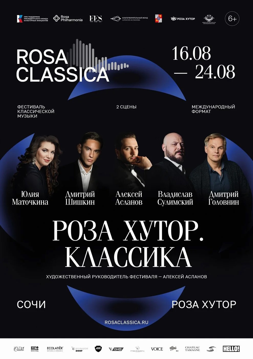 Дирижер, художественный руководитель фестиваля Алексей Асланов представит публике новый творческий коллектив Rosa Philharmonia, сформированный в рамках фестиваля. В его состав вошли оркестр, хор и участники фестивальной программы поддержки молодых артистов. В исполнении Rosa Philharmonia прозвучит Первая симфония Малера и Третий концерт для фортепиано с оркестром Прокофьева (солист – Дмитрий Шишкин). Также в афише балетный гала-концерт, открывший фестиваль, мюзикл Евгения Загота по мотивам повести Волкова «Волшебник изумрудного города», выступления артистов Сочинской камерной филармонии, хореографического ансамбля танцев народов Кавказа «Сиони» и победителей всероссийского кастинга молодых исполнителей (это и есть программа поддержки молодых артистов, являющаяся важной частью фестиваля). По итогам кастинга финалисты получают возможность выступить в концертах и участвовать в оперной премьере, являющейся главным событием фестиваля.
