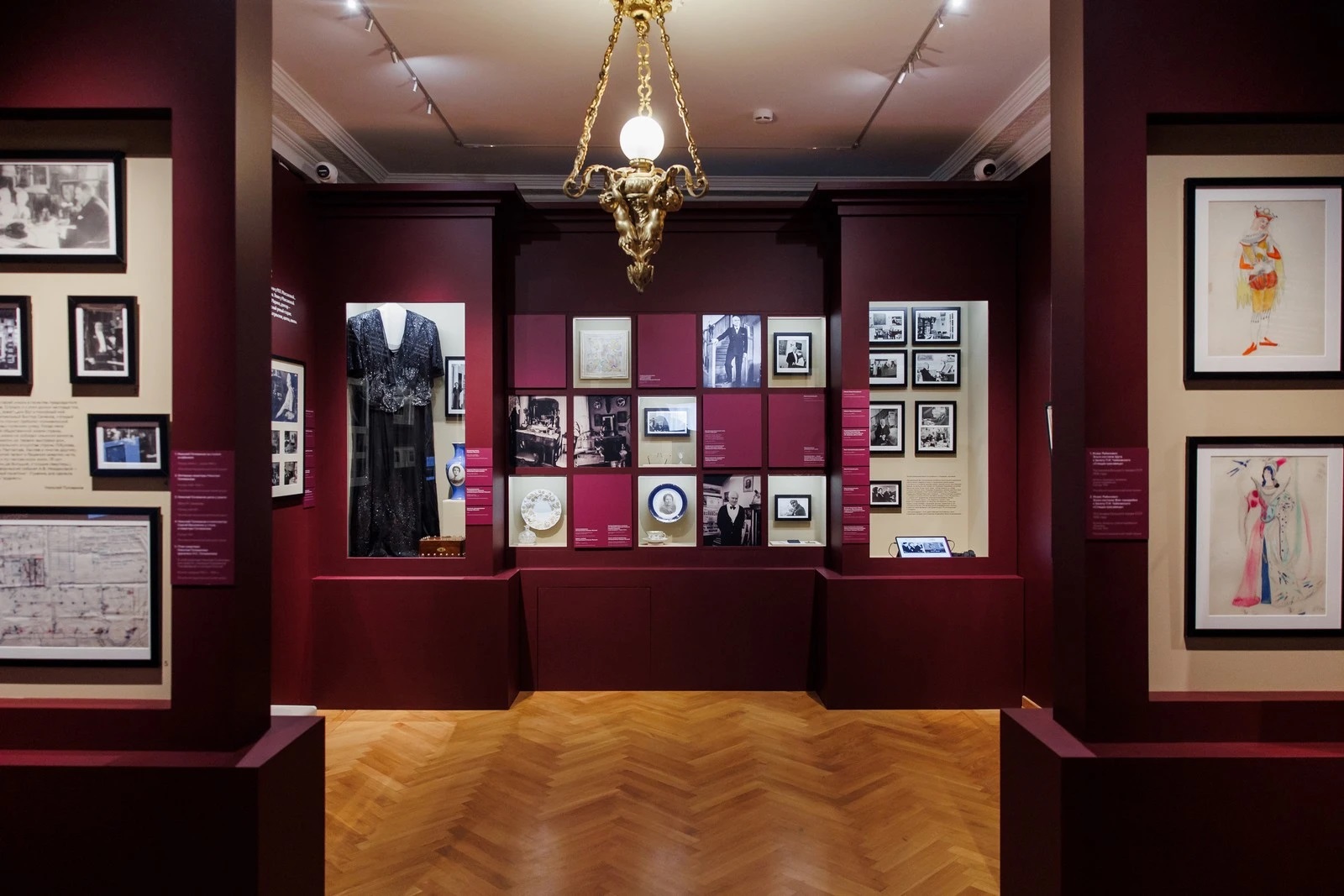 Экспозиция начинается уже на улице, в Брюсовом переулке: в фотографиях предстает история возведения здания, спроектированного архитектором Алексеем Щусевым. В самом музее посетители узнают о судьбах некоторых из живших здесь людей и о том, какой вклад они внесли в развитие российской культуры. Представлены фотографии, документы, произведения искусства и личные вещи знаменитых артистов. Например, можно увидеть концертное платье Надежды Обуховой, сценографические работы художников Федора Федоровского и Исаака Рабиновича, интерьеры квартир обитателей дома, запечатленные на фото.