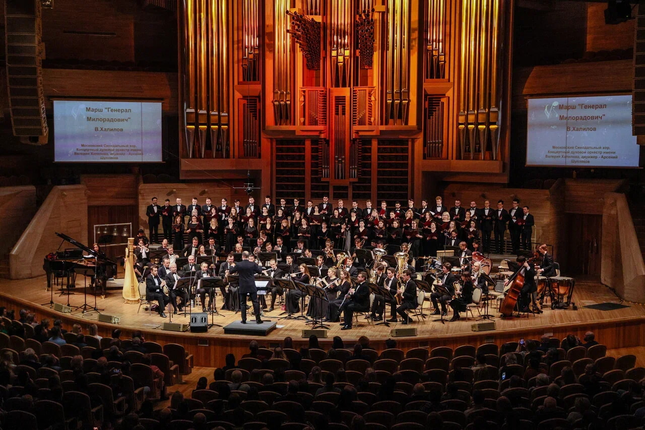 Вместе с оркестром также выступили Московский Синодальный хор под руководством заслуженного артиста России Алексея Пузакова и воспитанники Московского военно-музыкального училища имени генерал-лейтенанта В.М.Халилова.